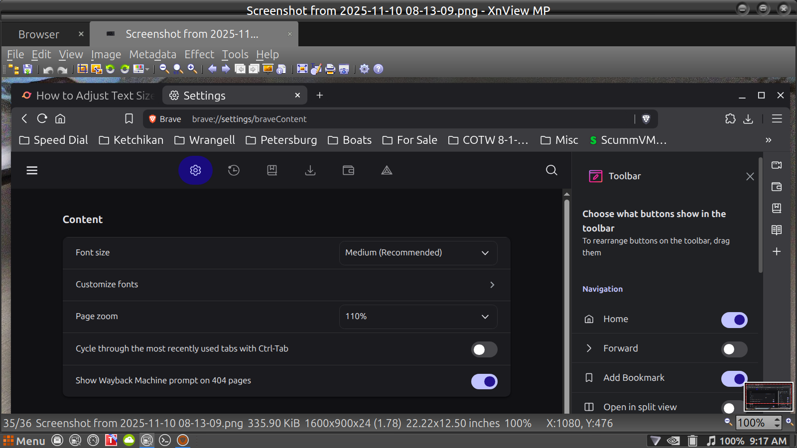 Not sure what happened but my Brave Tool Bar font size has increased drastically and not sure why .... tried to adjust both the Appearance and Content settings but nothing seems to work .... also reset both but nothing helps ....