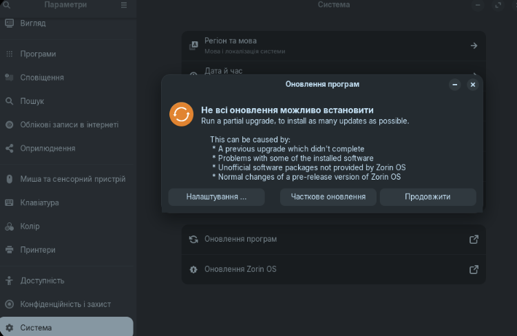 especially for what was written during the update, because the screen clearly says previous updates not provided by Zorin!