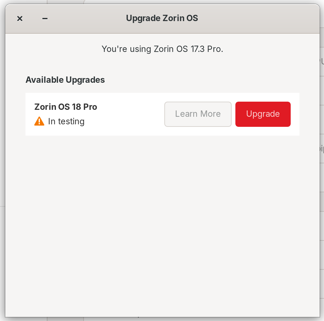 I've now got the option of doing (I think) an in-place upgrade of Zorin 18 Pro but I'm unsure if I want to try for fear of breaking a lot of things. Plus I can't afford the cost of the Pro right now.