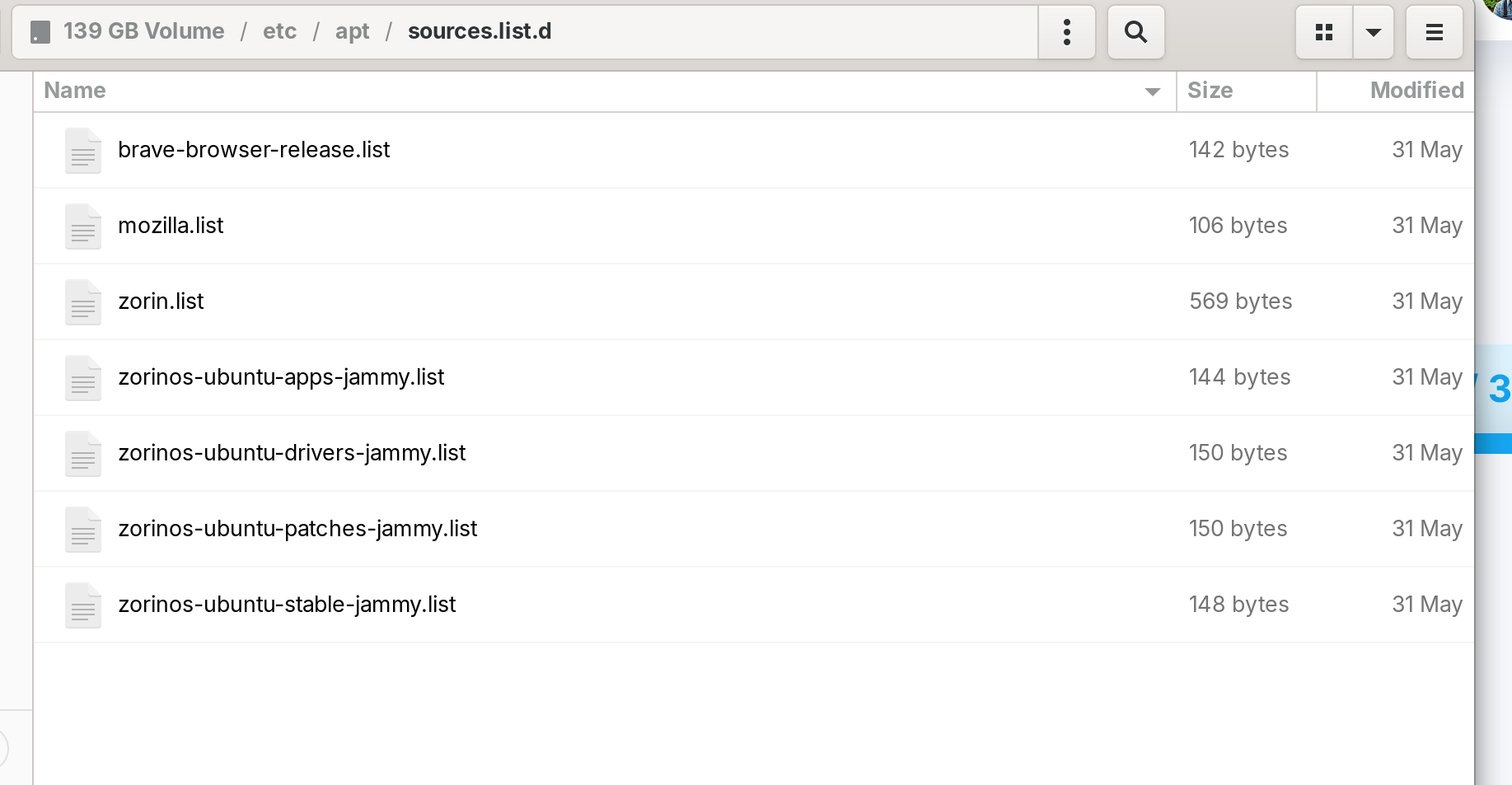 -rw-r--r-- 1 root root 144 May 31 2025 zorinos-ubuntu-apps-jammy.list
