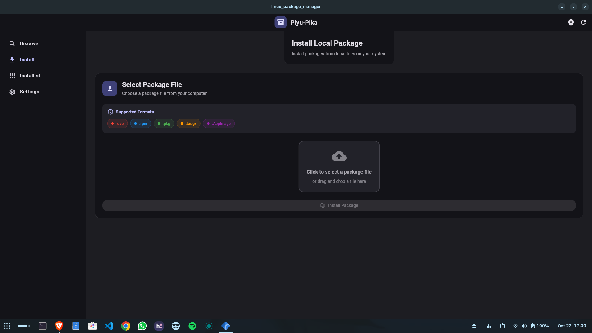 i am just a small flutter developer student and i usually face the problem of installing the application form the different format like .deb and tar.gz so i created my own package installer