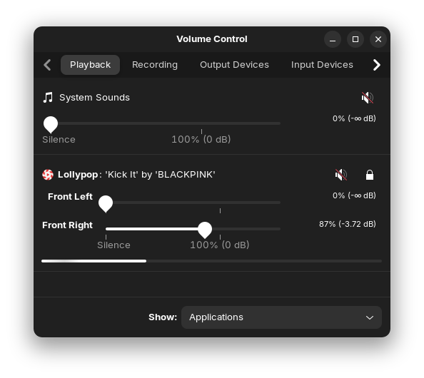- Launch pavucontrol : You can launch it from the application menu or by running the following command in the terminal: