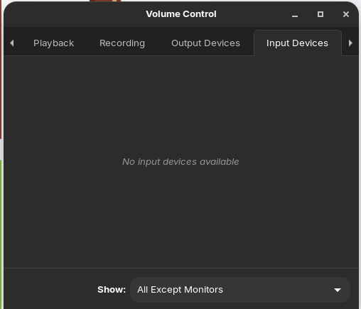 Hit F5 to show all sound channels, both inputs and outputs.