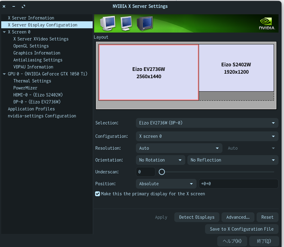 Even if i change the resolution in the nvidia x server settings i get a black screen. I don't want to try it out because if it fails i have to do a hard shutdown.
