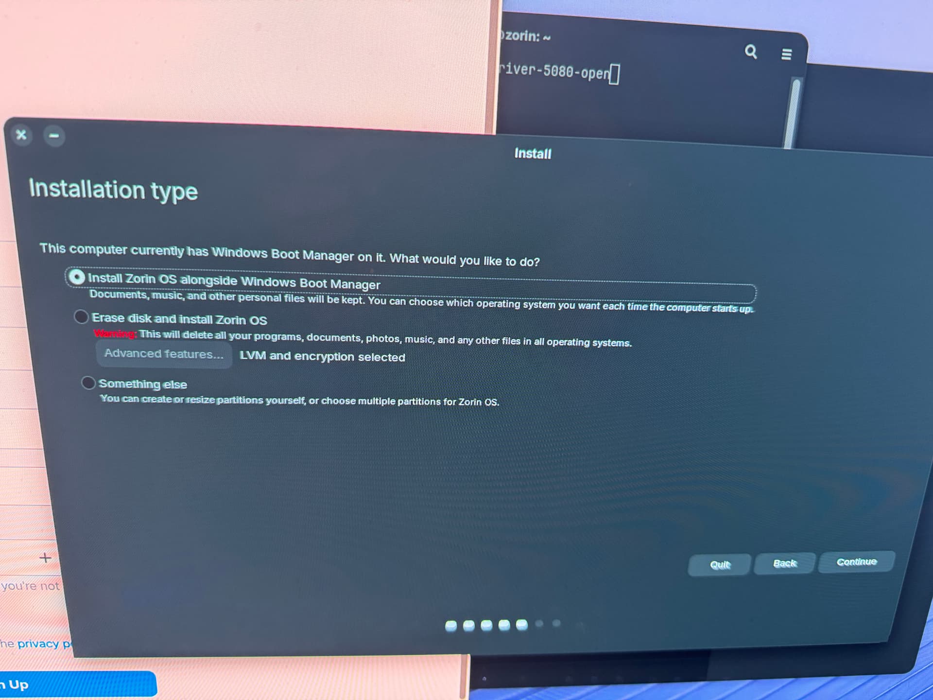 Then launch the installer, select that drive, at which point you will Create LUKS Fresh.