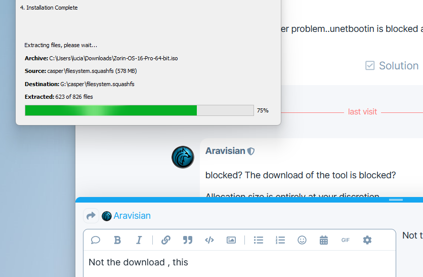 And there is another problem..unetbootin is blocked at 75% ...