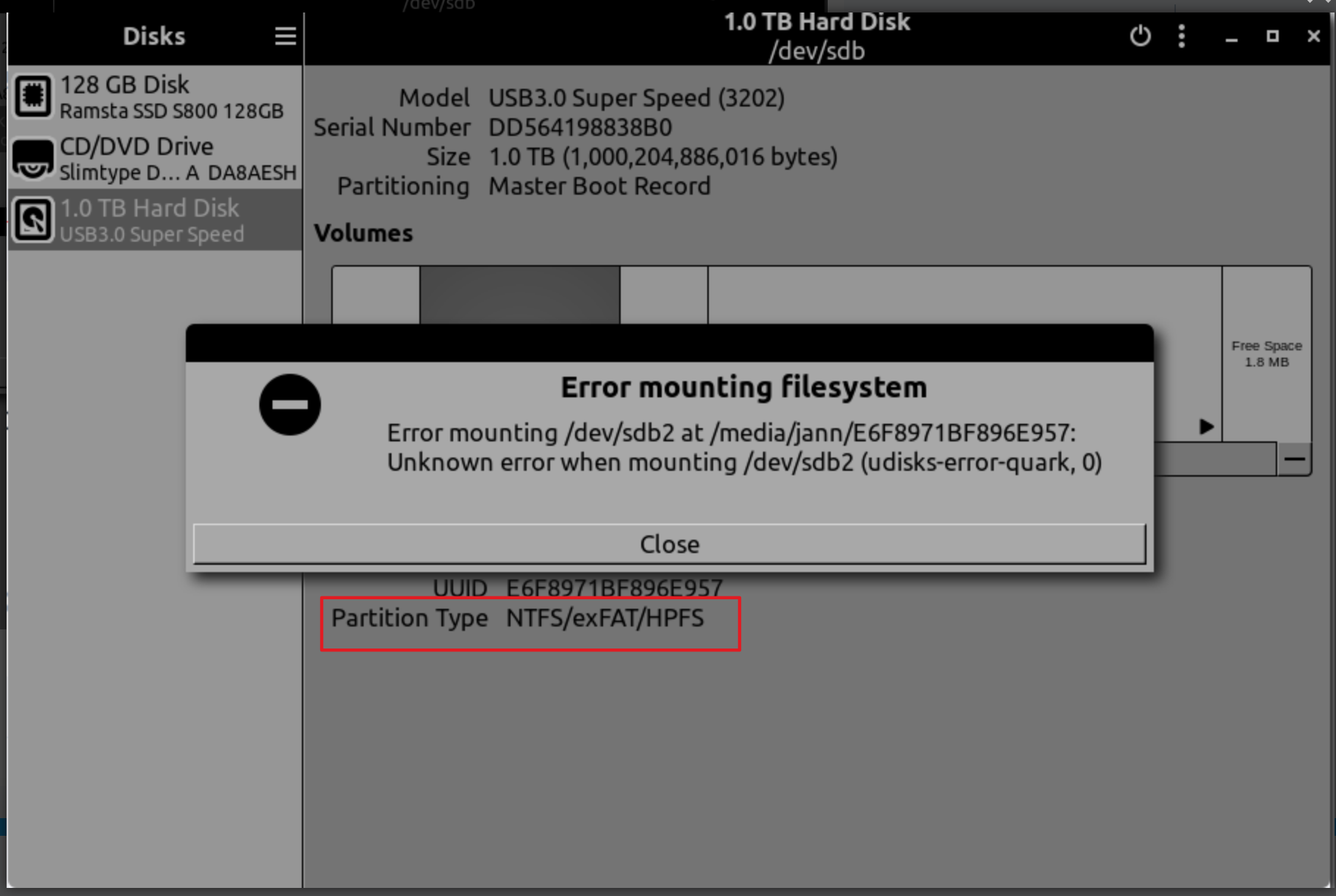 I dont know if this might help, This is what VSCode says when i tried saving the file that i was using stored in that partition.