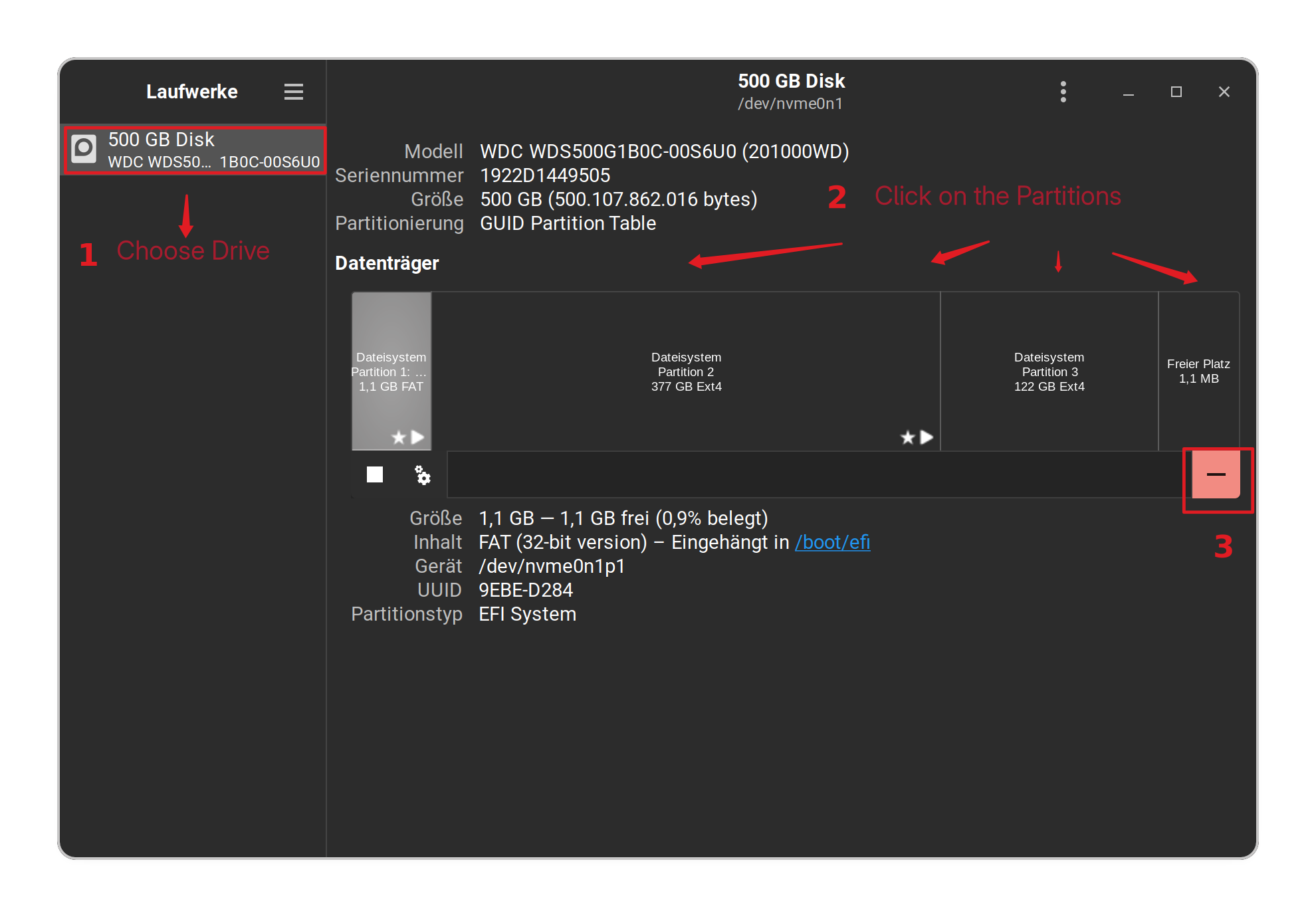 When You are in Disks, You choose the Drive on the left Side and then You click on every Partition on it and then on the - at the rights side under the Partition Table. After all is deleted, click on the Gears Icon and choose ''format Partition'':