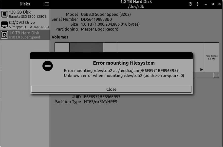 The power went out suddenly when i was in VSCode. After that, this appears when i try opening one of the partitions on my hard drive. The file that i was using was saved in that partition