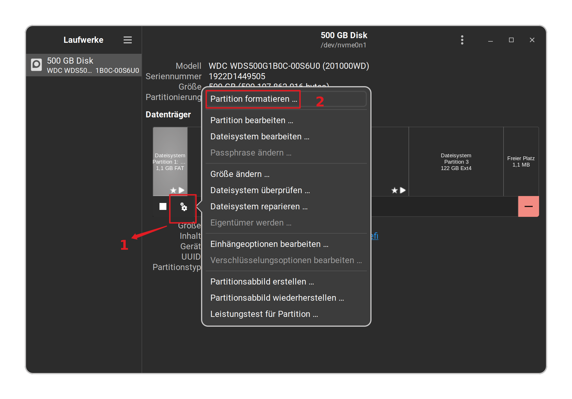 When you have connected your external drive and open the app disks, can you select the external drive and click on