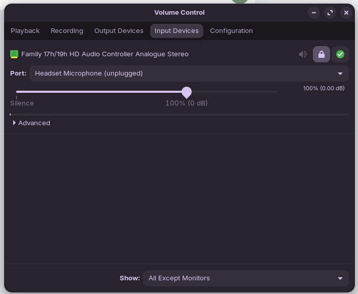 And within that menu, you can find Input devices, and there's also a tab for Configuration. Sometimes, in one of those menus, the device is simply selected wrong or configured wrong, so it's worth a simply check on that before going any further.