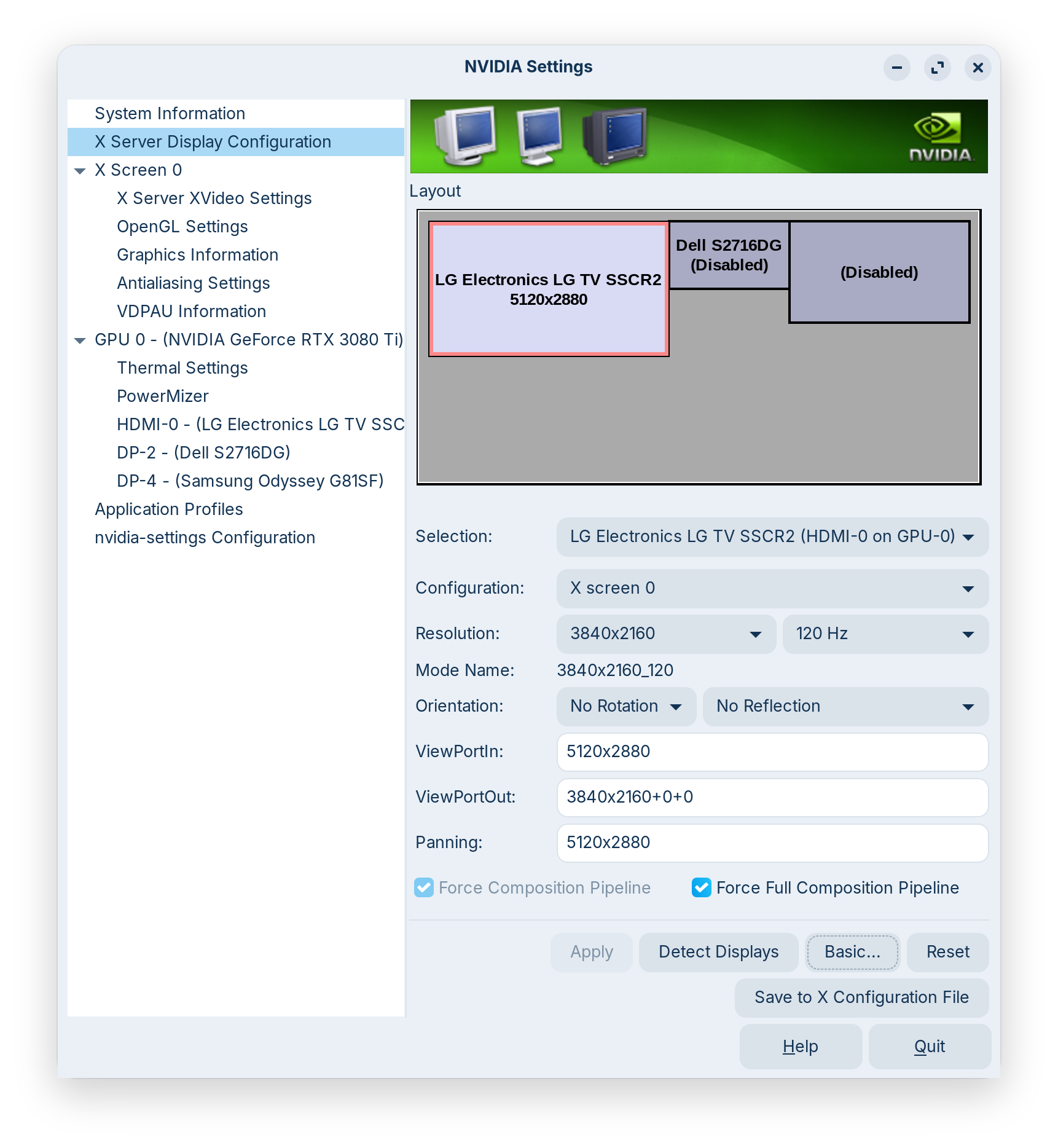 One thing I have noticed is that in the resolution is NEVER correct for my display in nvidia settings. I will attach screenshots.