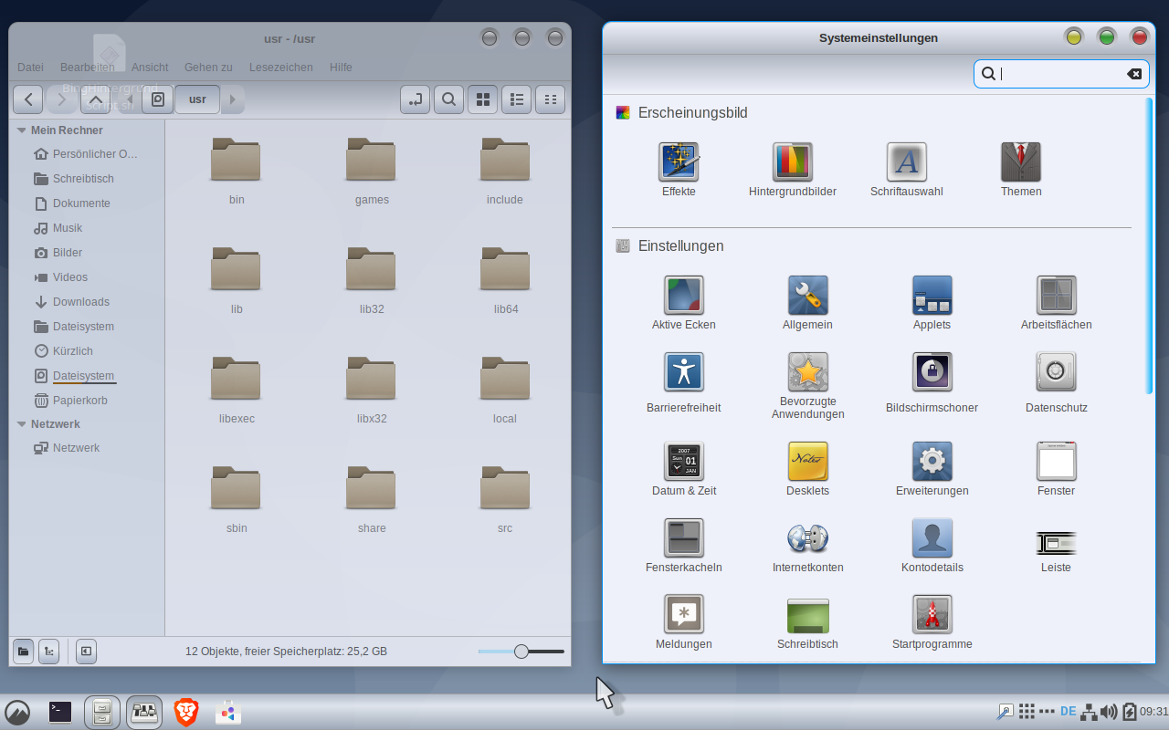 I'm fascinated by how smoothly Cinnamon runs on my 4 GiB VM, and this time there were no installation problems like with LXQT and Mint-Tools. I just don't like the gtk theme at all, but I don't know how to change it. Only some apps as brave and texteditor look nice and have a grey separate topbar.