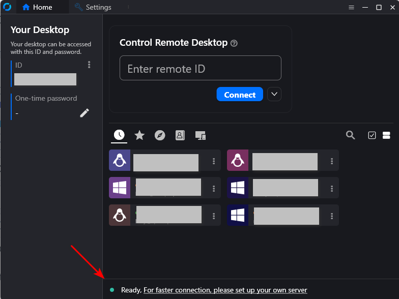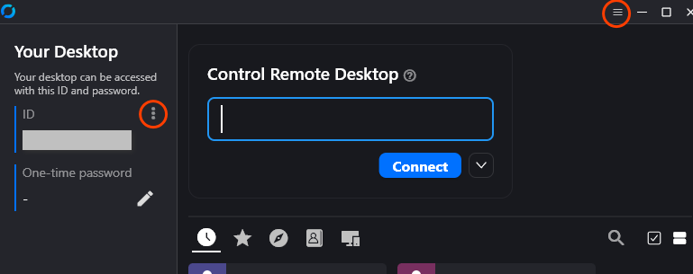 - Check out the icons on Rustdesk's main screen. The far left (a clock) shows "Recent Sessions"