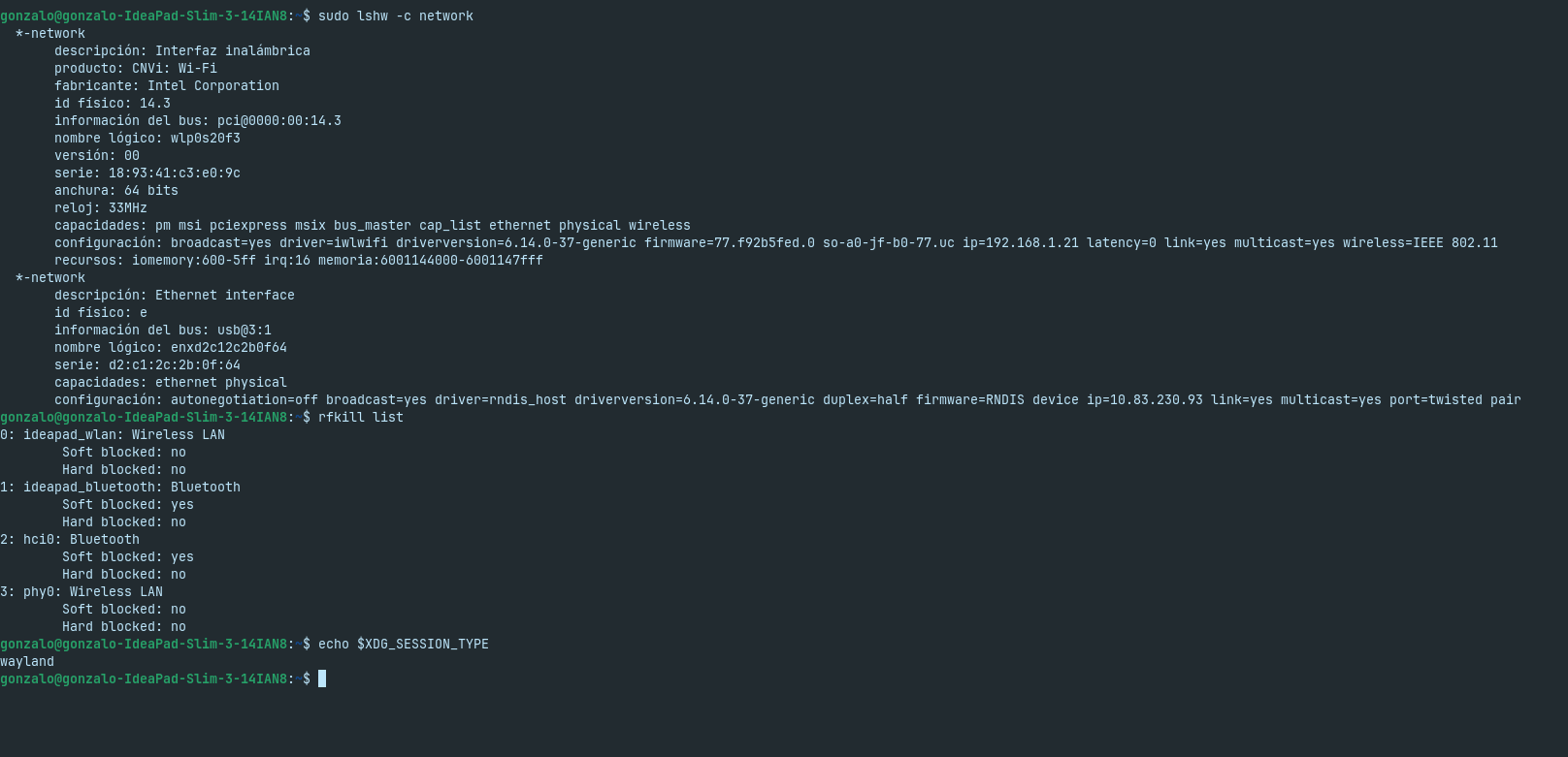 Also: Could You post the Output of the Terminal Commands sudo lshw -C network and rfkill list please? And check if Your System runs in Wayland or X11. You can do that with the Command echo $XDG_SESSION_TYPE