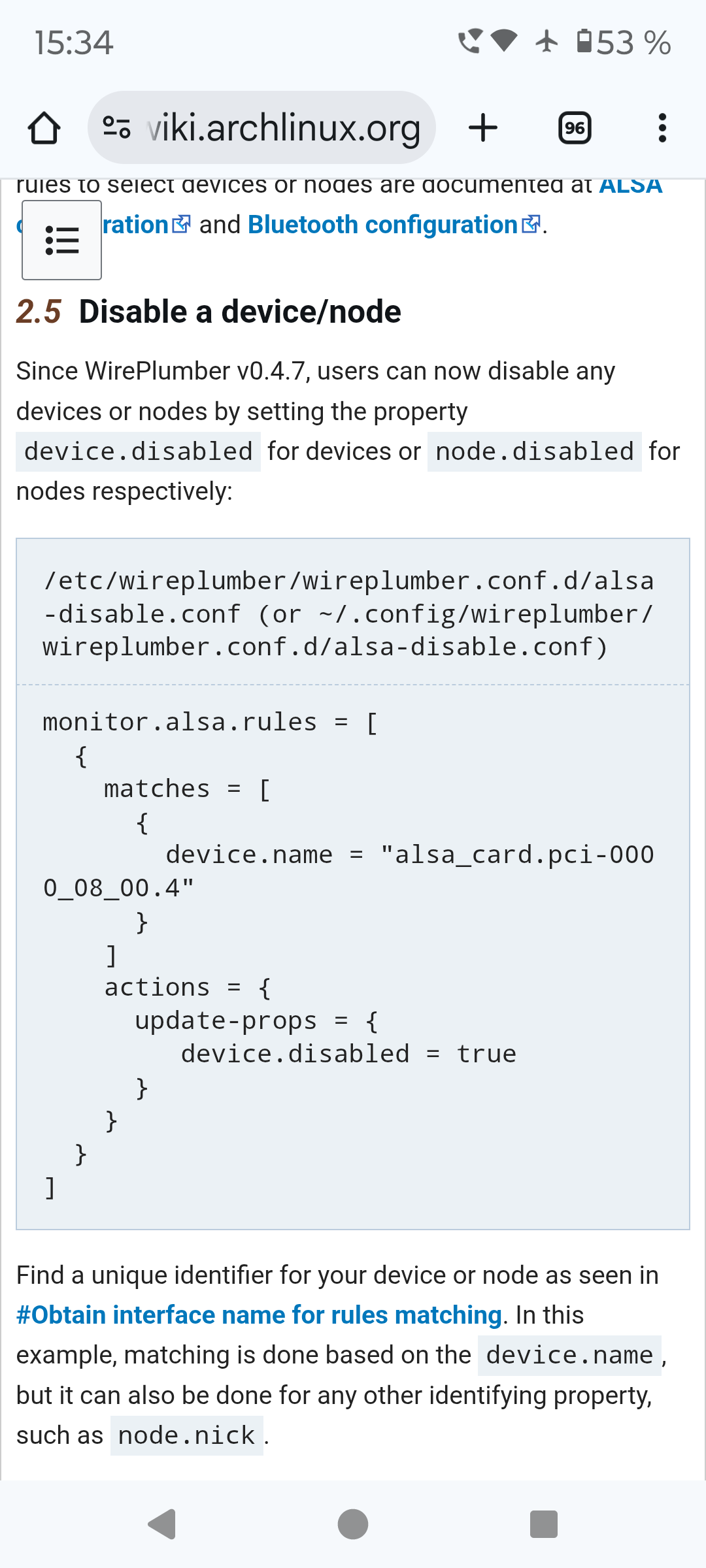 But strangely neither the Wireplumber GUI change, nor my change worked after restarting wireplumber/logging out & back in.