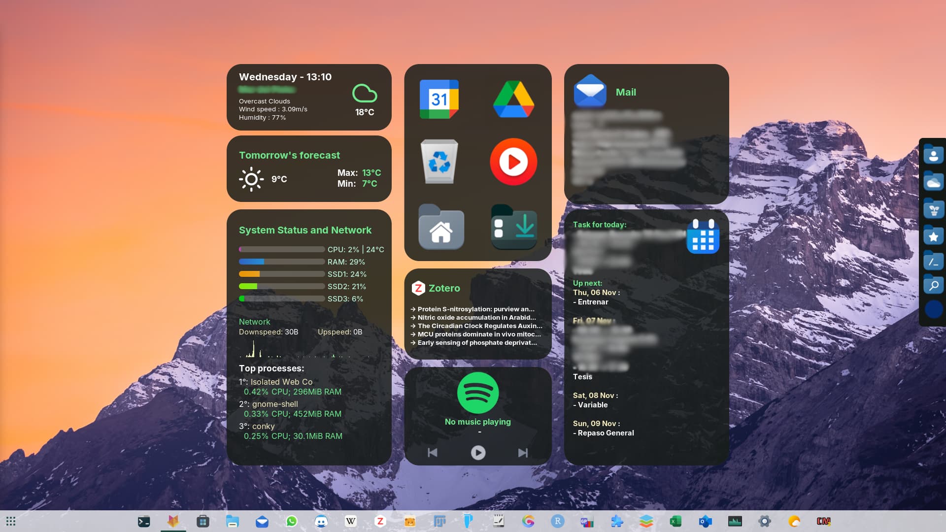 Also, my theme has clickable elements (native Conky feature), that I think works through xinput, and because of that, would only work with XWayland on Wayland (pasted image of my theme so you can see what I'm talking about, blurred stuff because I don't wanna doxx myself)