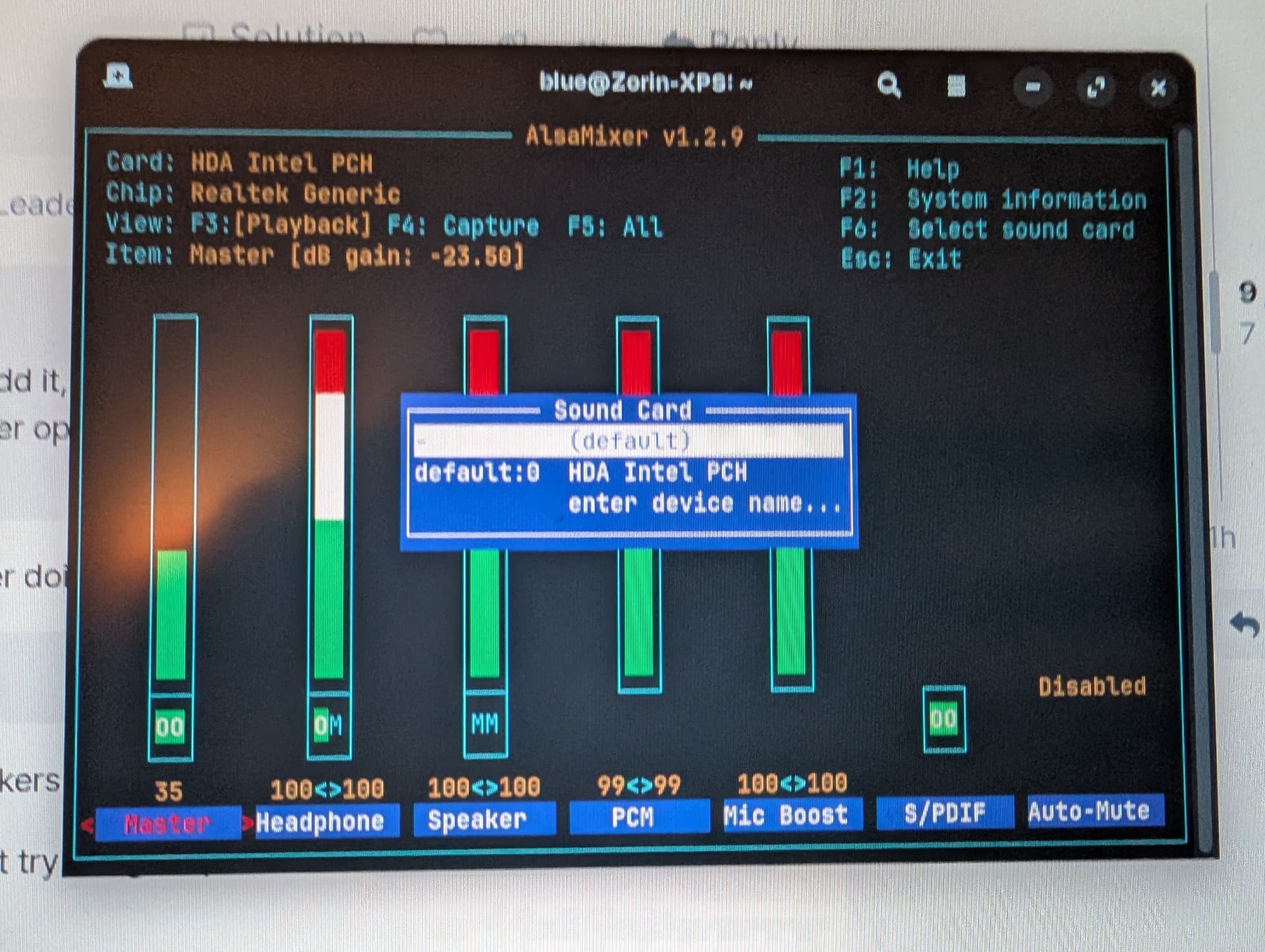 In alsamixer, when you hit F6 what soundcards are listed? Post a screenshot.