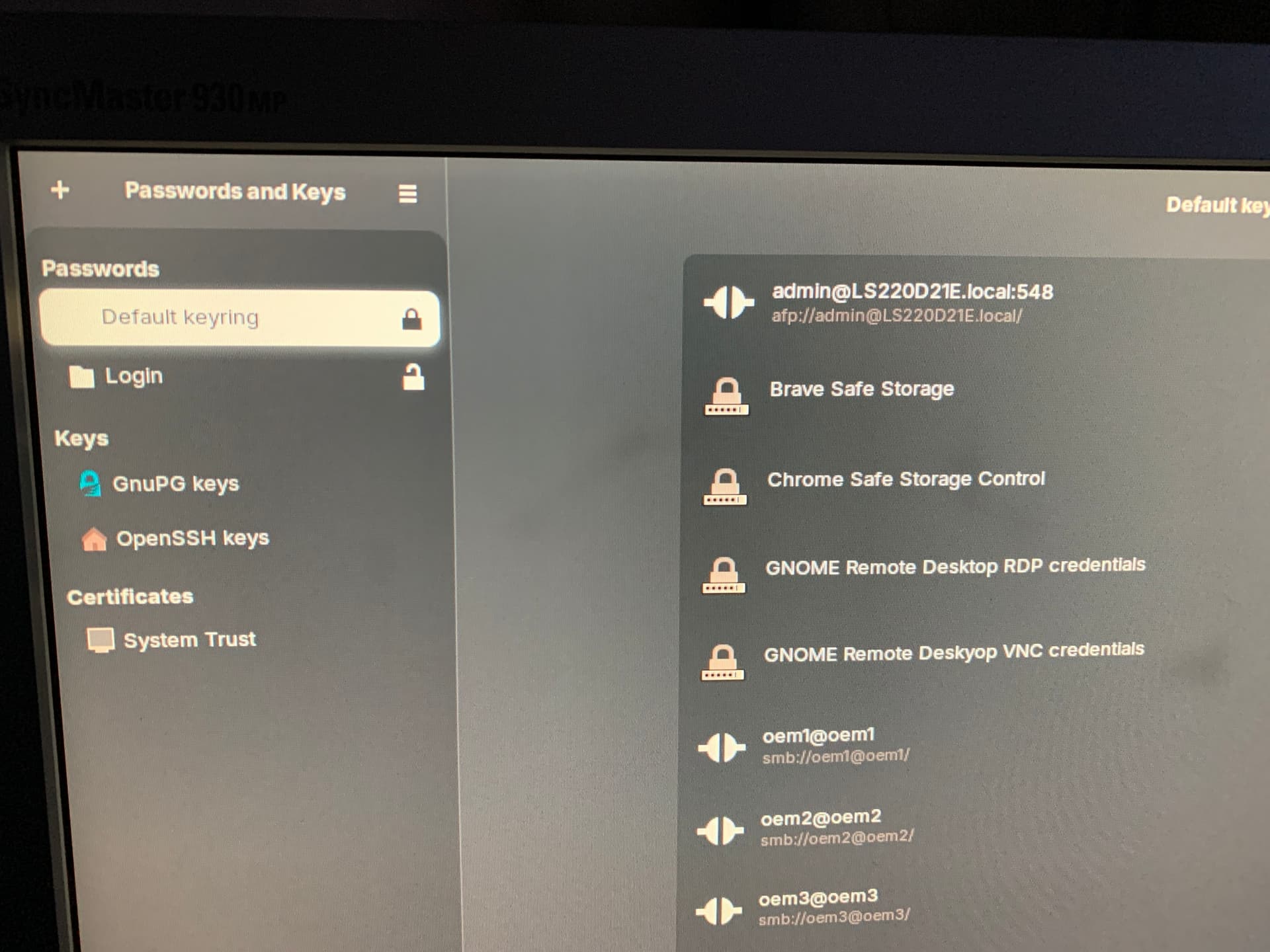 note #1 -To get to the 'Passwords and Keys' panel, click the 'Z' start button on the taskbar and start typing "Keys...."