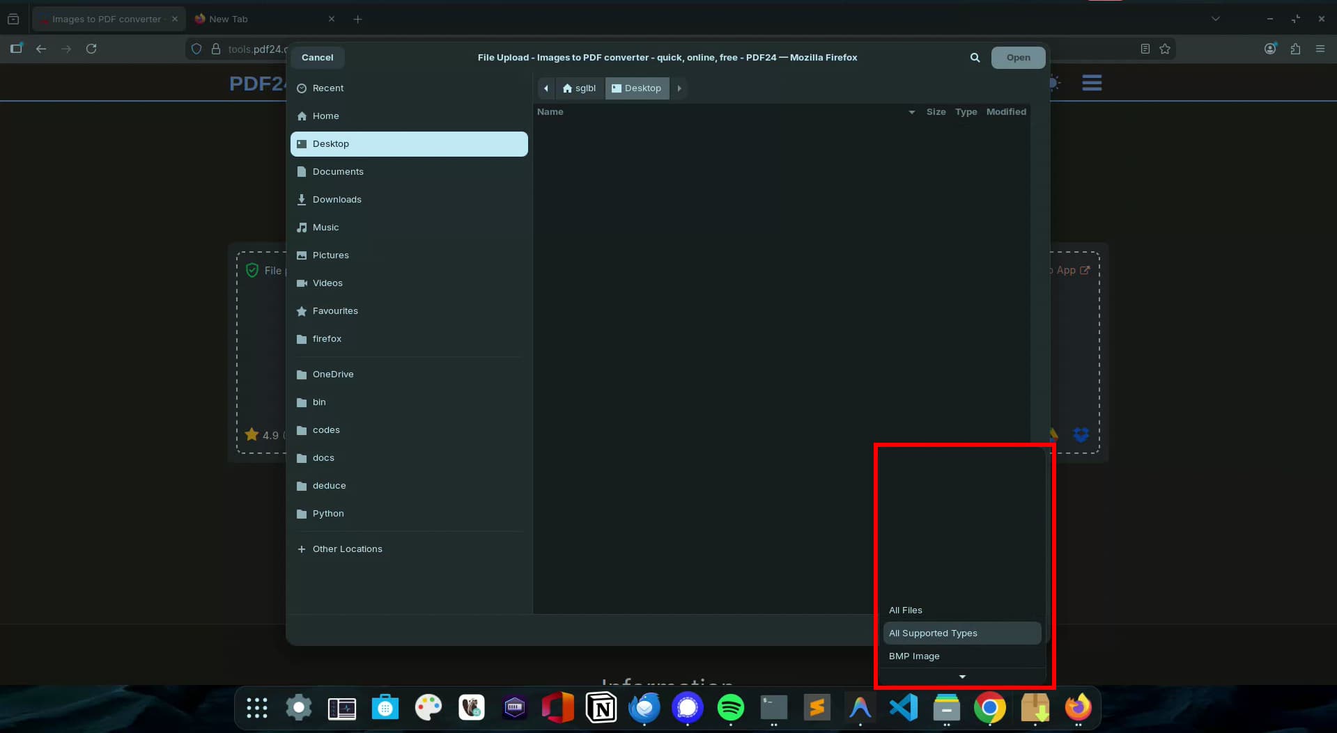 But instead, Linux only shows "Customized Files" but no extensions. So I have no idea what types it supports. (It's not just for one website, Gnome File Picker only supports if only one extension is allowed.)