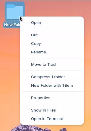 Samba is not installed, but the file manager has its own implementation for establishing network shares. This is both good and bad. One the one hand, this can be confusing because the option to create a network share will not appear if you right-click a folder directly on the desktop: