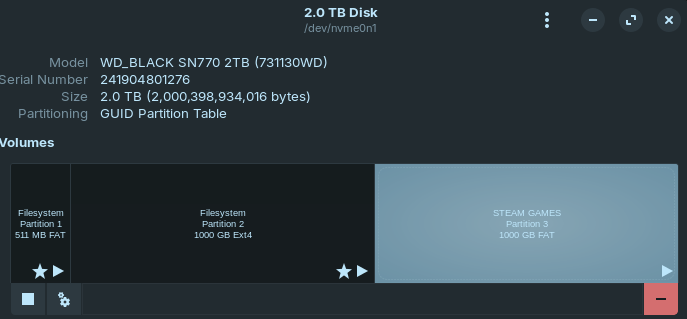 So, I set everything up, OS has been working great, however I can't seem to get the actual other half of the drive to work. I decided to just make it a Linux drive and just use it for storage for my games, but I can't really do anything with it. I'm specifically using steam built in from the Software app, I'm able to do everything in my standard drive no problem, but once I go to Add the other partition to steam, it doesn't register really anything.