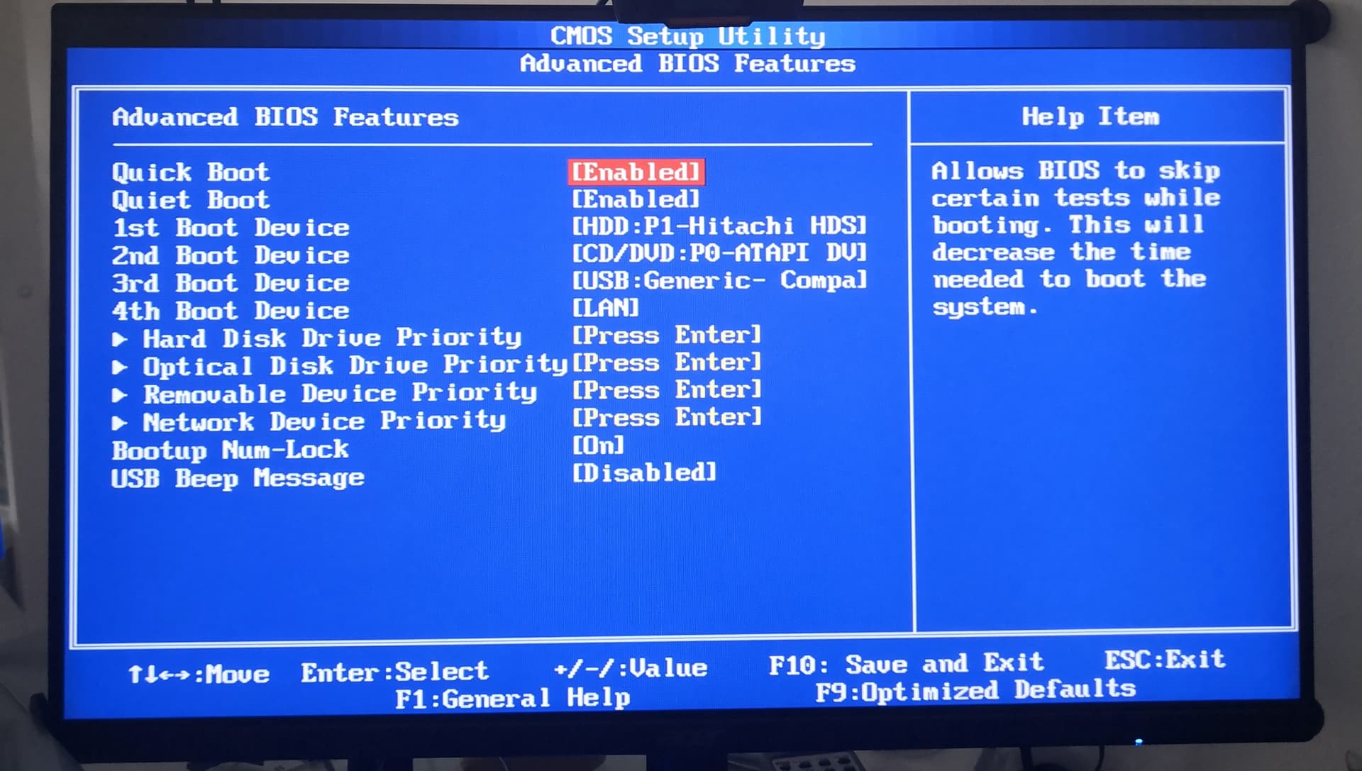 Here You see the Boot Device Options (1st, 2nd, 3rd, 4th). And there choose the 3rd one with the USB if that is the plugged in USB Stick. You ave there the Option ''Removable Device Priority'' too that could help to start from USB Stick, too.