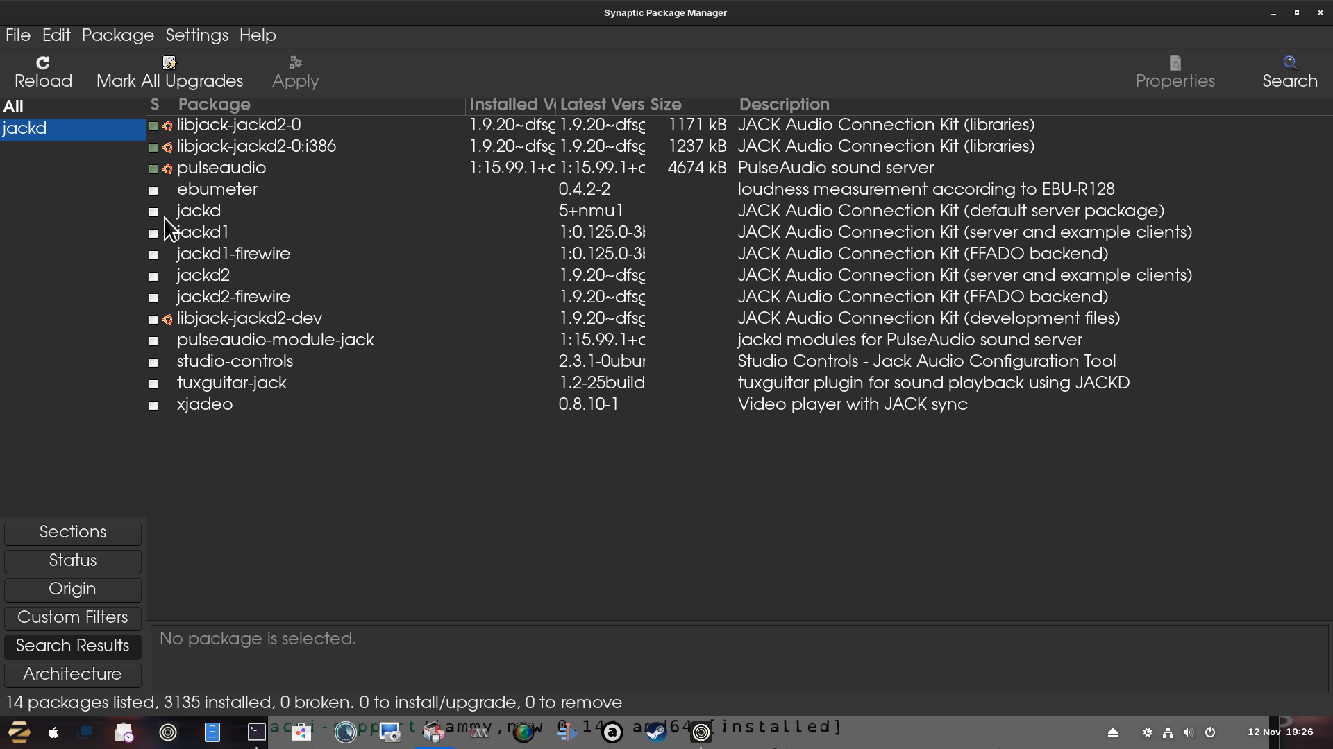 [Footnote: to install packages it is best to make sure you have Synpatic Package Manager installed and search for each package using the search function, mark them for installation, then hit Apply in the top Bar]: