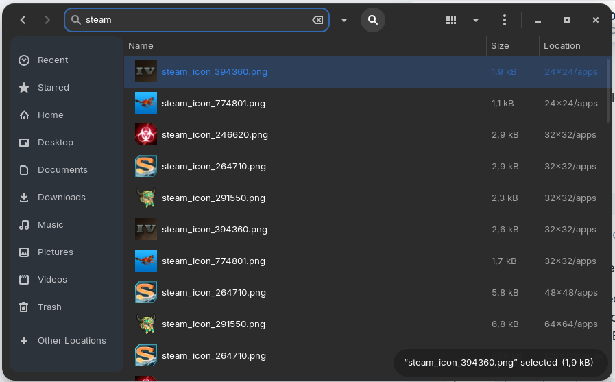 In your ~/.local/share/icons/hicolor/-sizes-/apps/ directories, can you find any SuperSus icons that are labeled as Steam application icons?