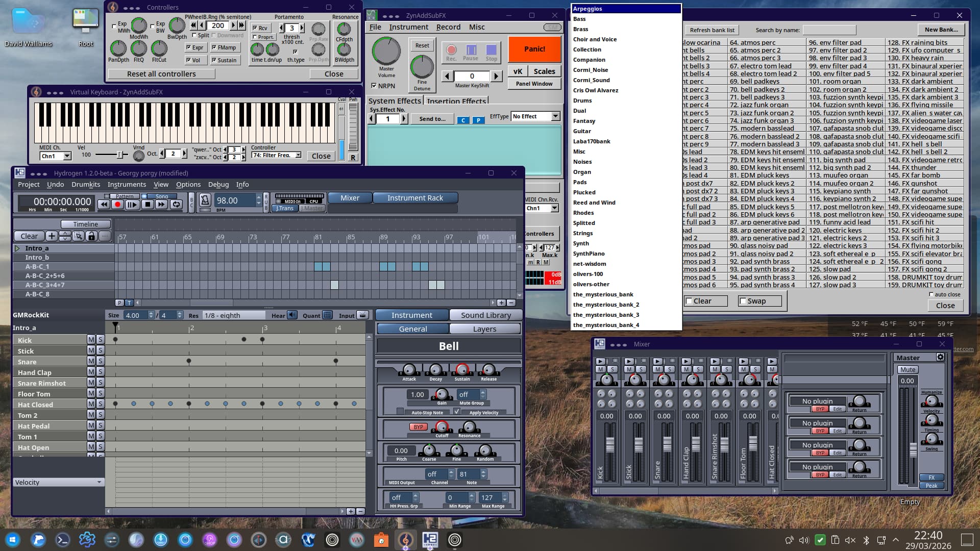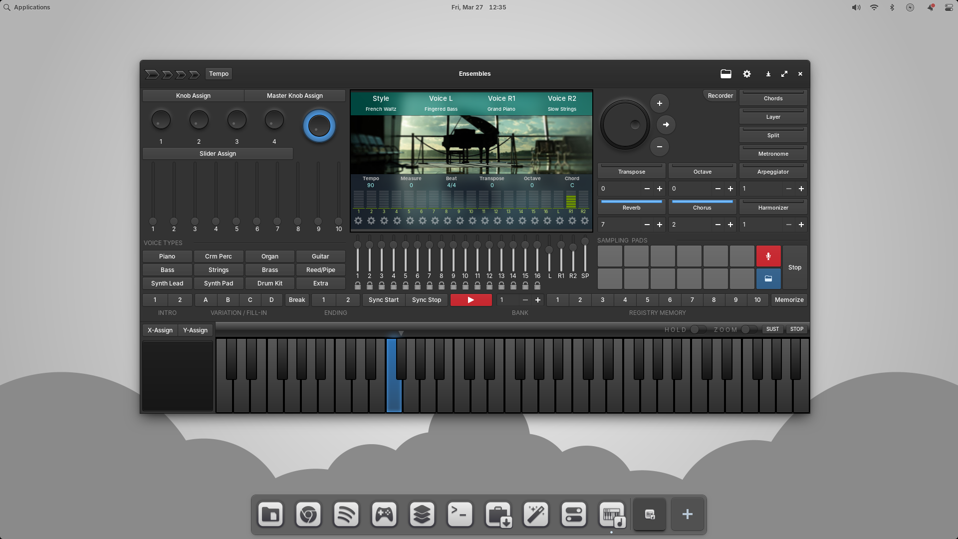 Can't get Ensembles in non-flatpak format. Probably not compatible with PCLOS Debian. Decided to install ZynAddSubFX and Hydrogen drum apps: