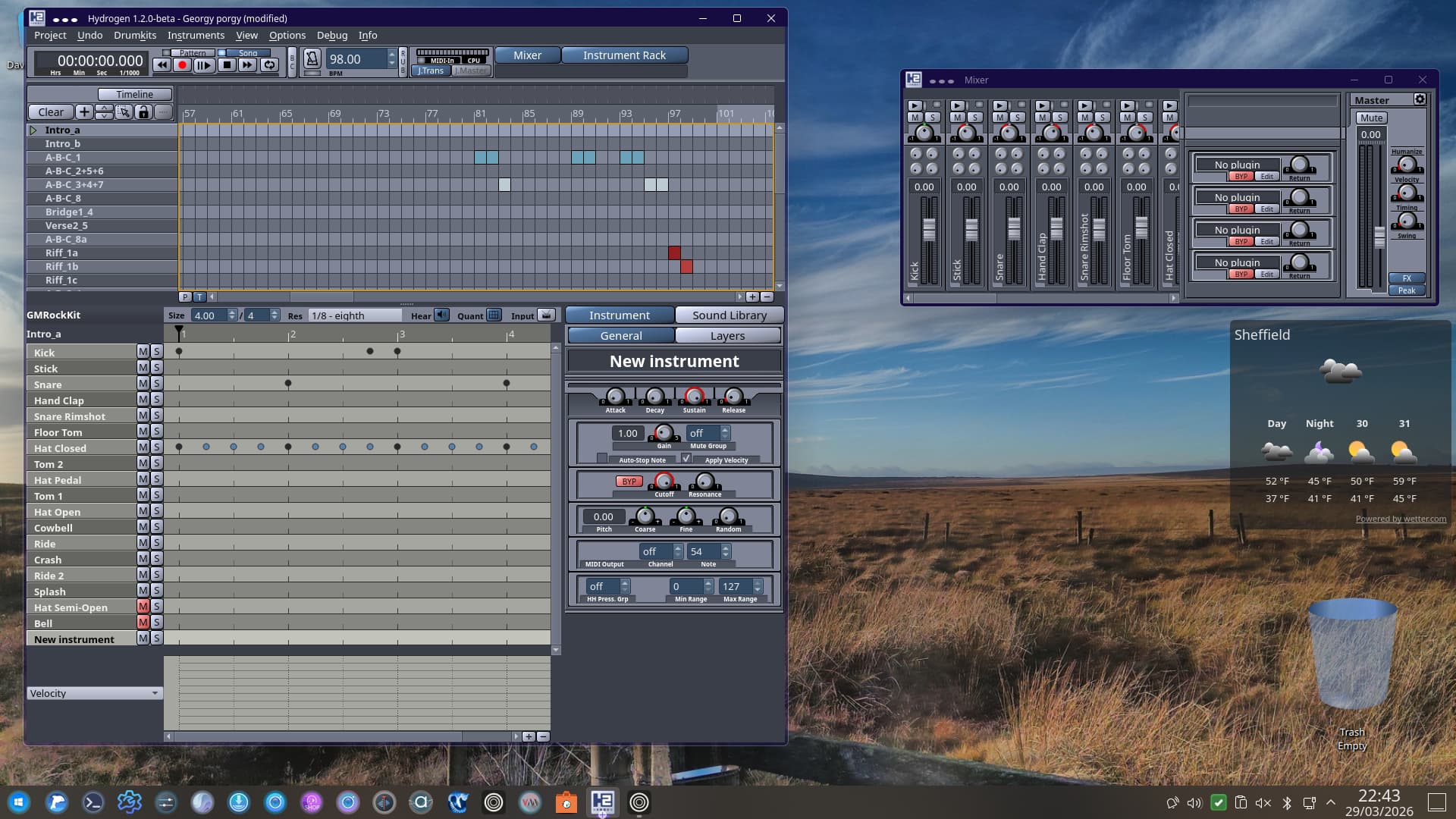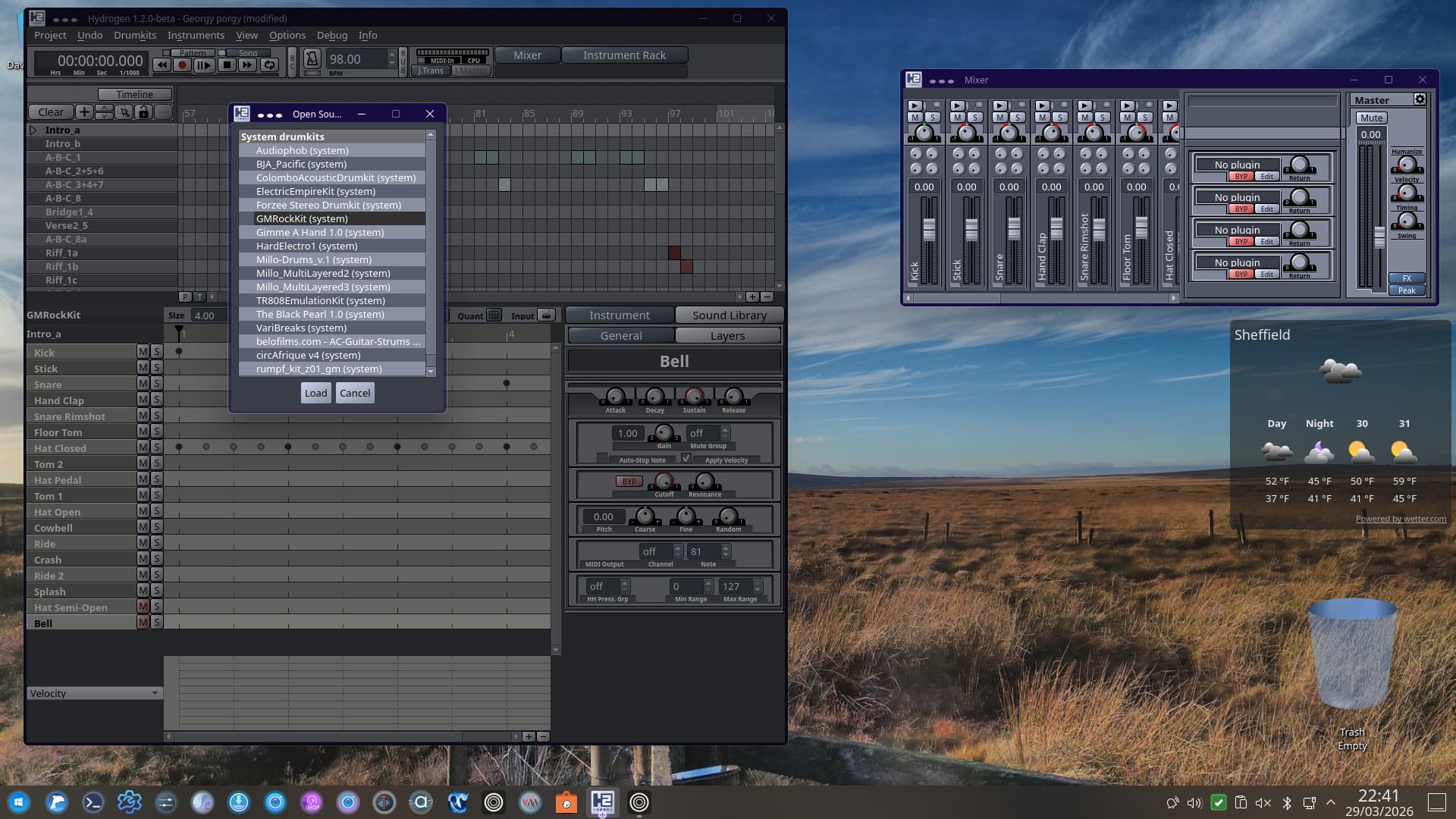 Hydrogen: Drum machine sequencer, including Demo track provided by the late great drummer of TOTO, Jeffrey Porcaro from the Georgy Porgy track. Also offers different drumkit sets.