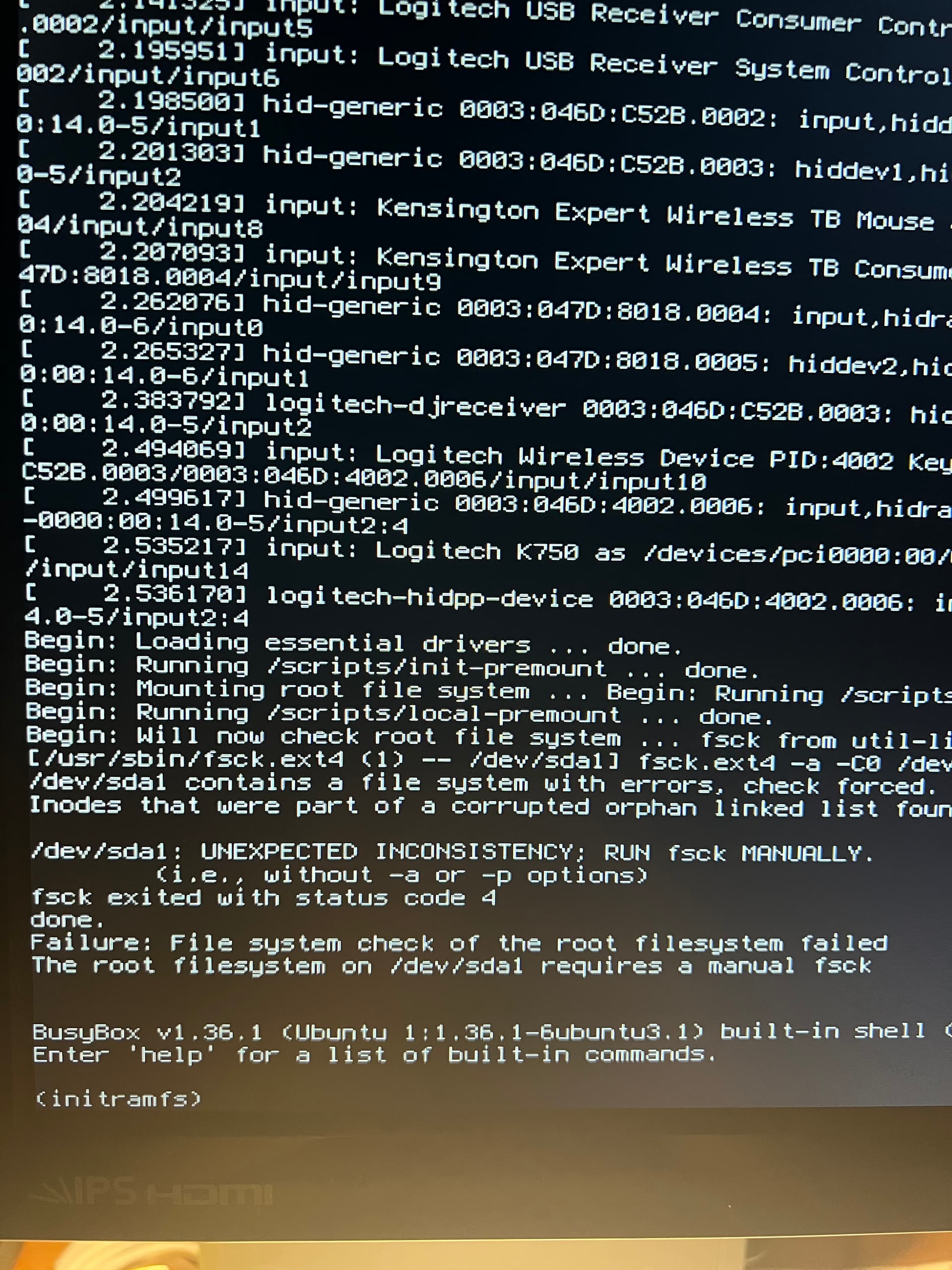 /dev/sda1: UNEXPECTED INCONSISTENCY; RUN fsck MANUALLY.