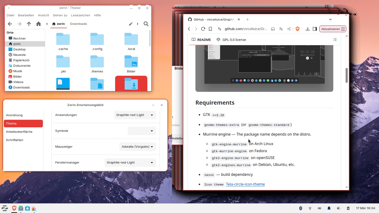 The live session is already closed, I tested the normal graphite dark and light variant yesterday. I asked more out of general curiosity, since all of Vinceliuice's themes are installed in a similar way. In the screenshot it was red light version.