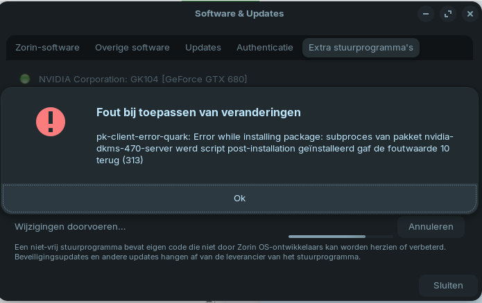 Also a last detail. that mok driver is new to me. when this system worked on my 1050 it worked fine after some tweaking. (It never gave me the prompt to install a MOK) But this card is just to weak to play my games with. When placing in the gtx680 I also had this problem. But I did a factory reset (clean install from a USB stick) then as I said my screens worked normal again but I could not play any game thats when this started.