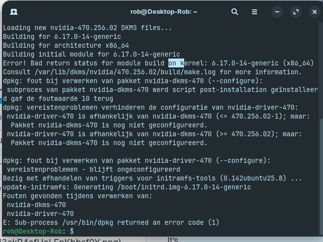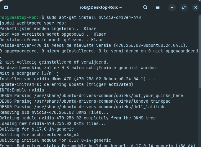 I'd recommend to test the installation of the 470 driver with kernel 6.8. Few users reported that they were not able to install the 470 driver on Zorin 18 with kernel 6.14 or higher.