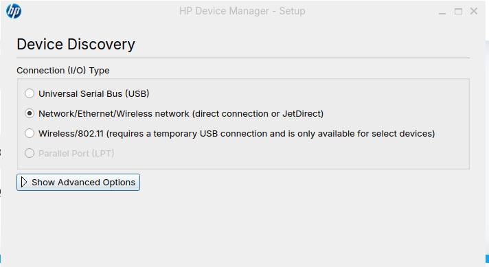 If auto discovery still fails after the above, you can get your Printers I.P. address and direct to it. (replace xxx.xxx.xxx.xxx with the Printer I.P.):