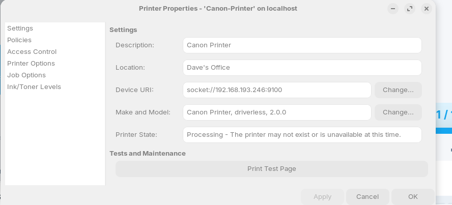 I am new to Linux/Zorin 18 so please be aware that my Linux skill level is pretty low for now. I am trying to get my 3 network printers operational. I was hopeful it might have all happened automatically in the background as when I opened Settings > Printers, I see all 3 listed and "ready". They are 2 HPs (OfficeJet Pro 8100, Smart Tank 7900) and a Canon iP7220.