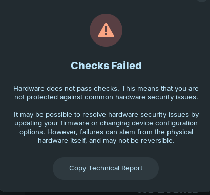 Pre-boot DMA Protection: ! Fail (Not Enabled)