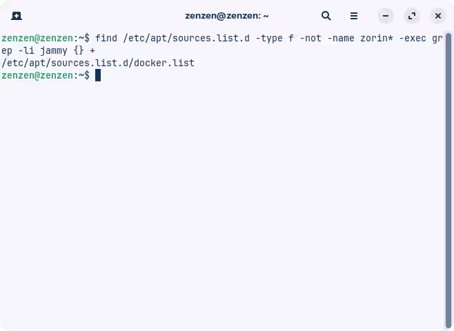 find /etc/apt/sources.list.d -type f -not -name zorin* -exec grep -li jammy {} +