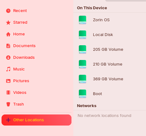 But in the file browser it does not appear when you click on other locations