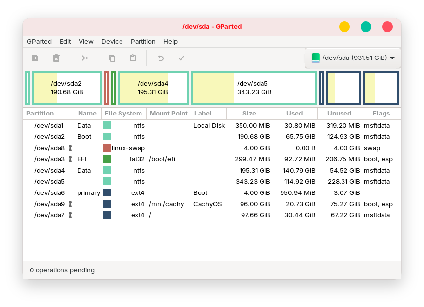 The sda9 disk is the disk with the CachyOS distro installed