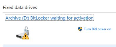 in my case, I plugged my drive in my father's Office PC and this message showed up in "BitLocker Drive Encryption" setting: