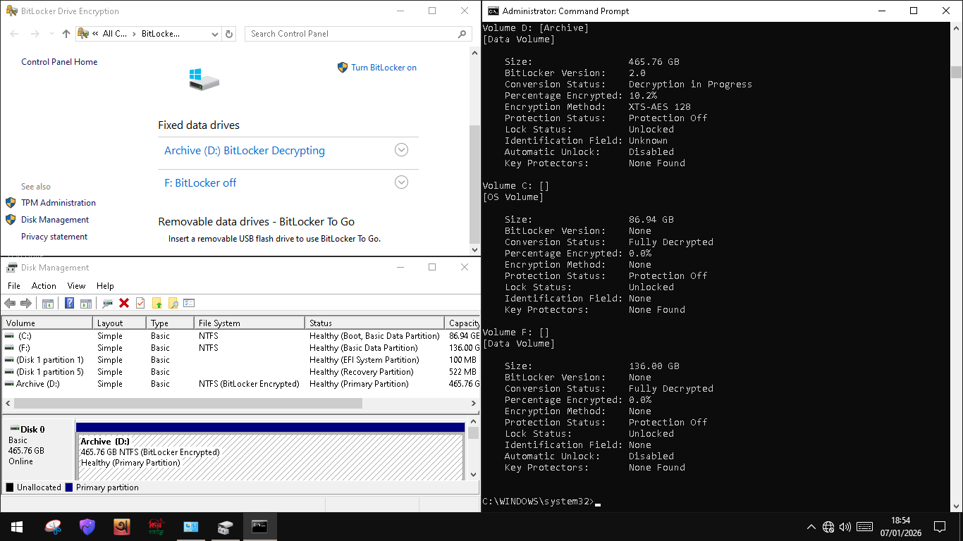 Note: Use this code " manage-bde -status " to check decryption status.