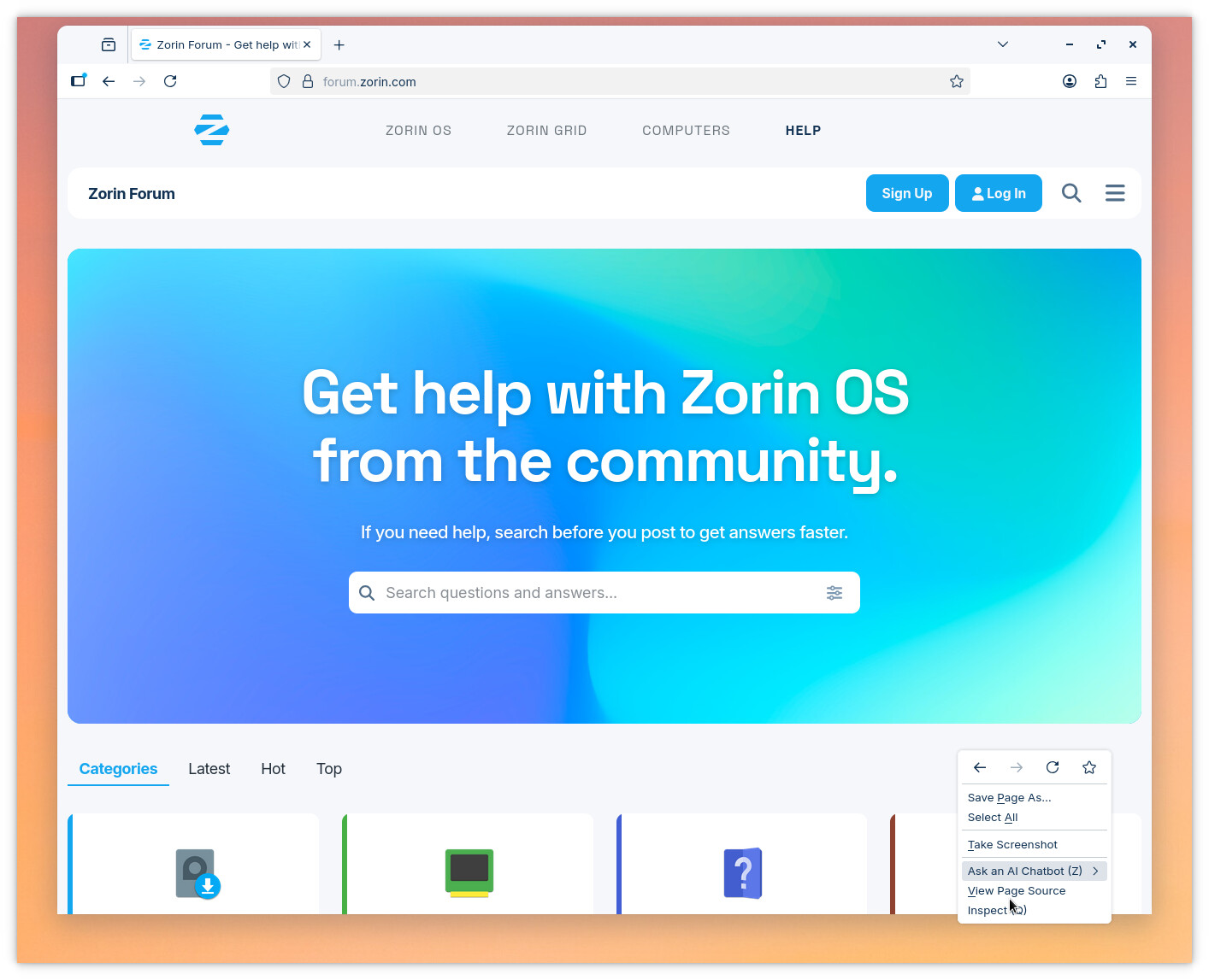 Apologies if this is old news, however for the first time I just noticed a new option in my context (right click) menu in Firefox: Ask an "AI chatbot (Z)". I've been disabling AI related stuff in anything at adds it, and found no new option in settings for this one. There was, however, an option in the same context menu for "Remove chatbot." After using that, I don't see the option anymore.
