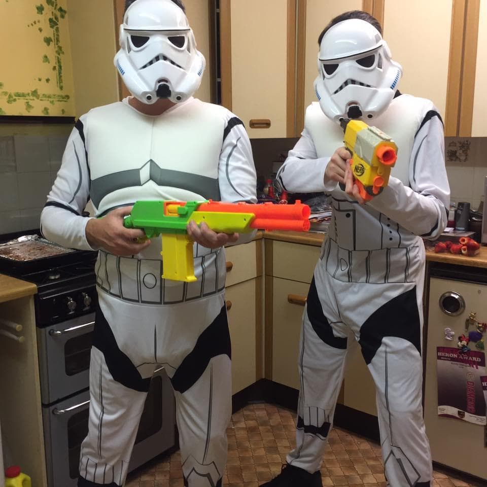 They didn't even realize, their no longer holding Storm Trooper issued disruptors, their now holding water guns. Here, time to cool off, this desert heat at Moss Eisley space port, can be awful.