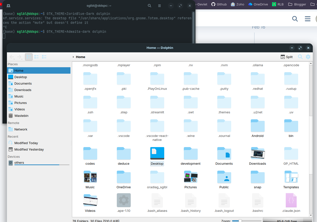 I have added the repository of elementary os at the moment and installed thunar to see how it behaves. Thunar in version 4.2 has different folder colors for hidden folders (thunar of ubuntu repo in noble is version 4.18) and works with Zorin dark theme: