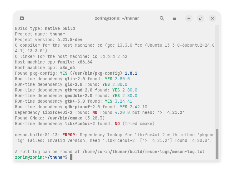 I have downloaded thunar from the xfce site and changed the translucent value in the file. Now I want to compile it, but I´m not familiar with this procedure and get many errors because of missing packages. Do I need to use a source for thunar which is for gnome when I make that in Zorin 18 core or it is right to use this source?