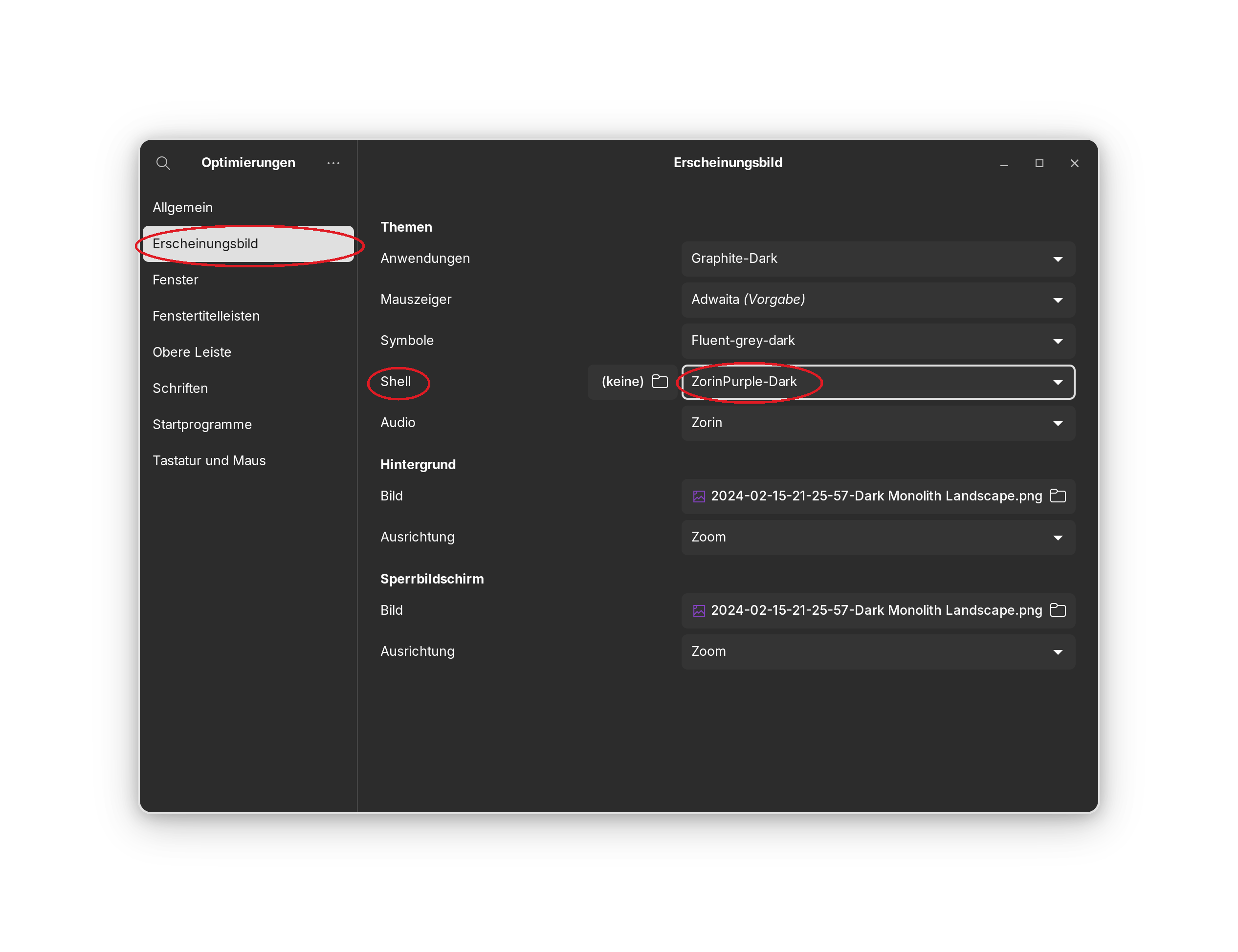 When I see it right You want to use Zorin Dark Purple. Did You tried Gnome Tweaks? If not You could try that. You can find it in the Gnome Software Center or open the Terminal an type sudo apt install gnome-tweaks