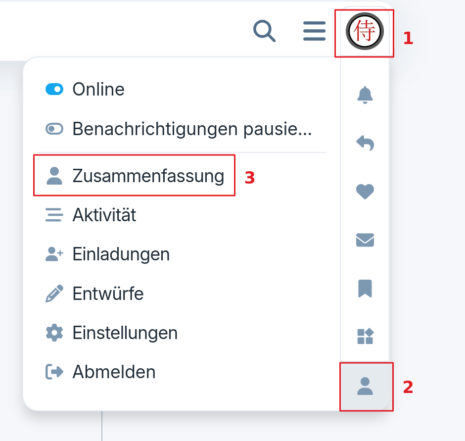 First, You click on Your Profile (1), then on the Person Icon (2) and then on Summary (3).