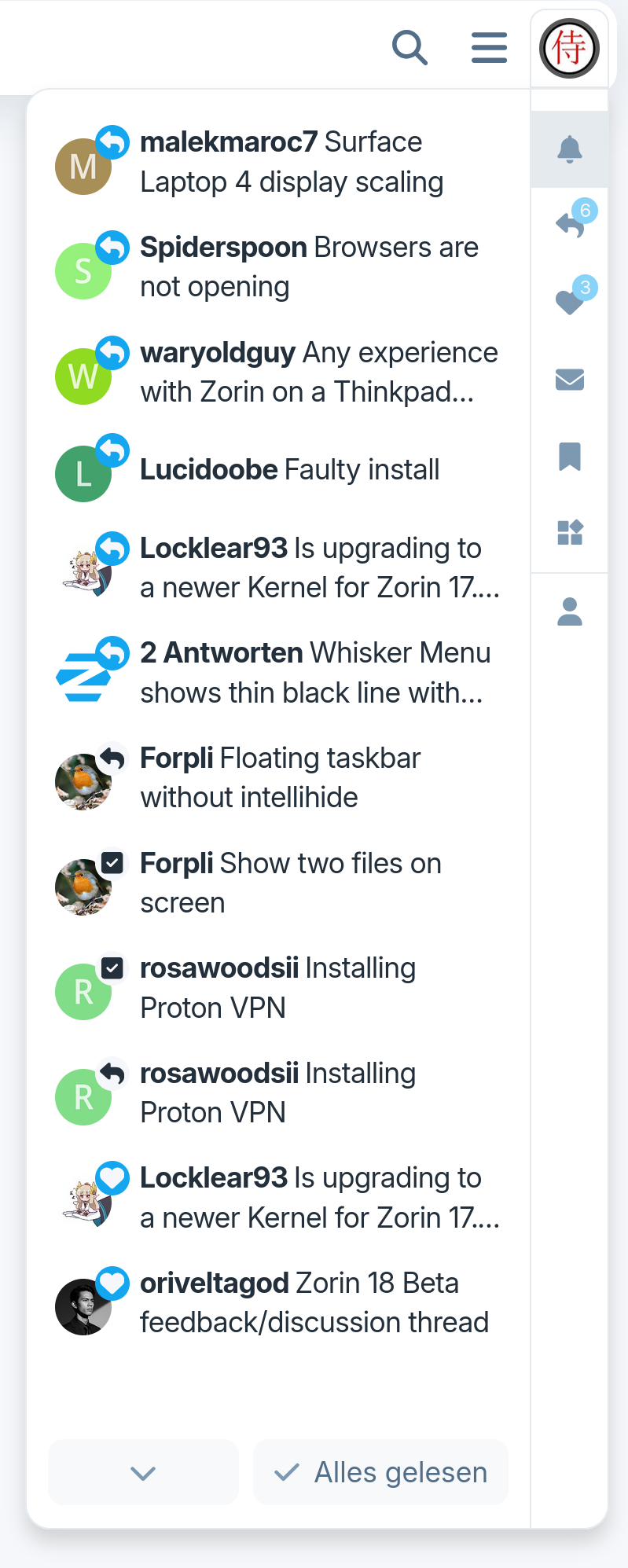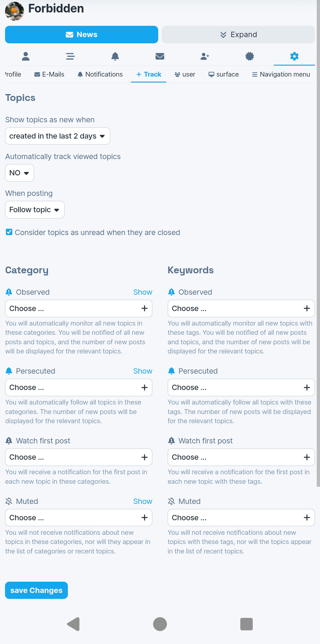 I think I've got the preferences figured out. One more question: When I click on the user icon, it shows me a list of threads. Is that a default or is that affected by my preferences?